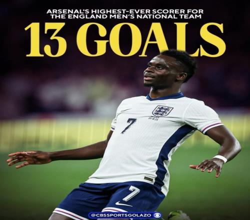英格兰友谊赛3比0威尔士,24岁的萨卡第20分钟打入国家队生涯第13球,由此超越1931-1938年效力三狮期间打进12球的克利夫·巴斯廷,成为代表英格兰队进球最多的阿森纳球员,打破了尘封86年的纪录。